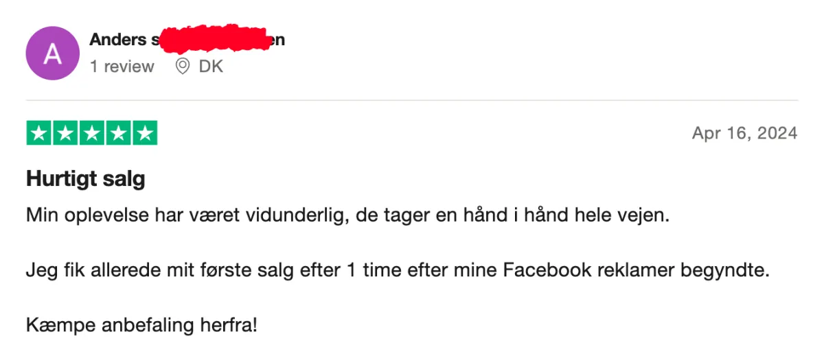 Du kan få refunderet dine penge i de første 30 dage, men kun hvis du har fulgt vores rådgivning, herunder brugt mindst 1.000 kr. på annoncer, og ikke fået et salg.